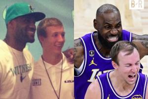 B/R晒图:昨日三分绝杀的肯纳德,曾经在詹姆斯的AAU球队效力。