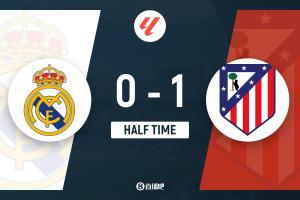 半场-皇马暂0-1马竞 巴尔韦德单刀中柱卢宁险送礼卢克曼破门